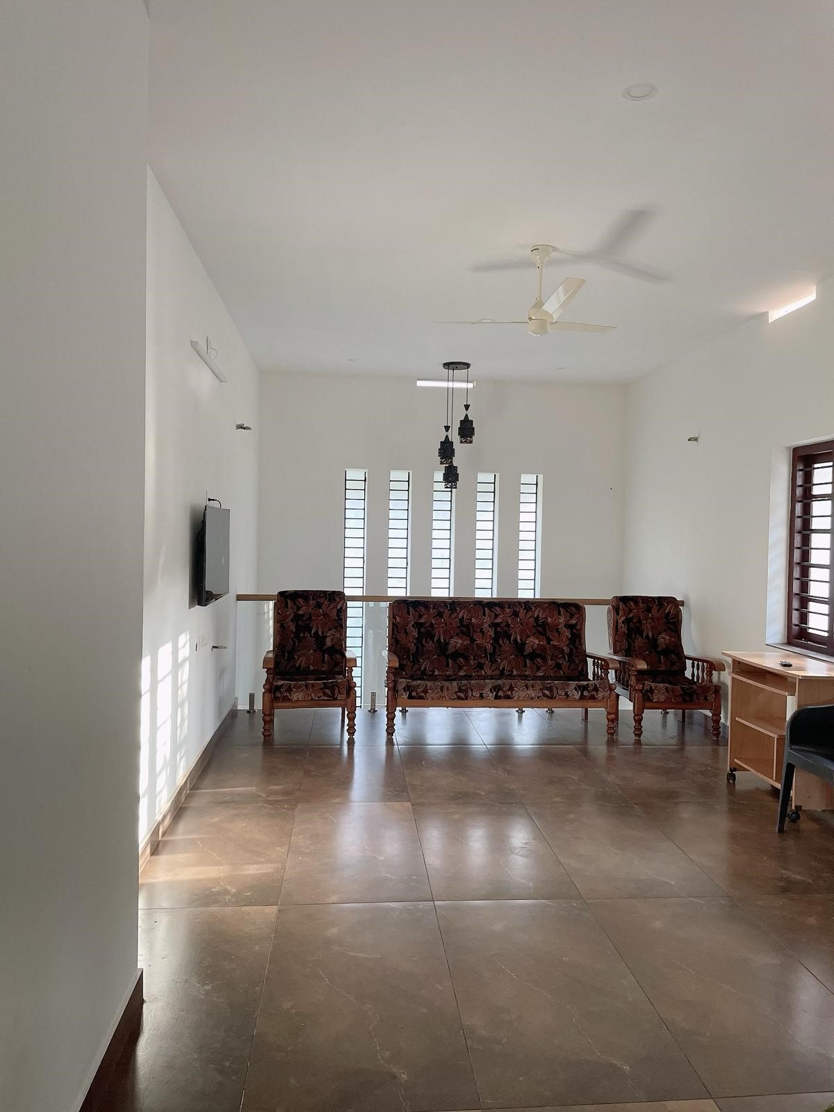 First floor: family living area, two washrooms attached bedroom, front balcony,
