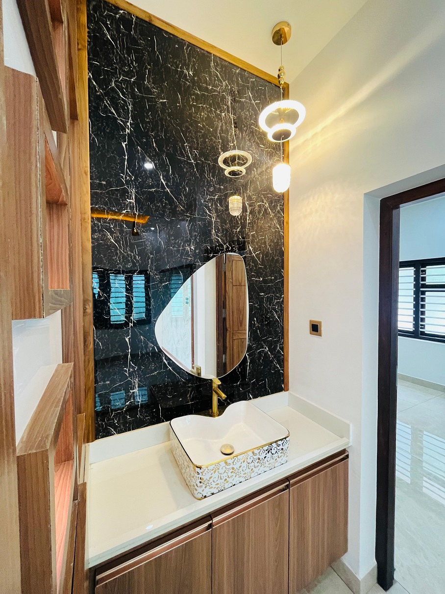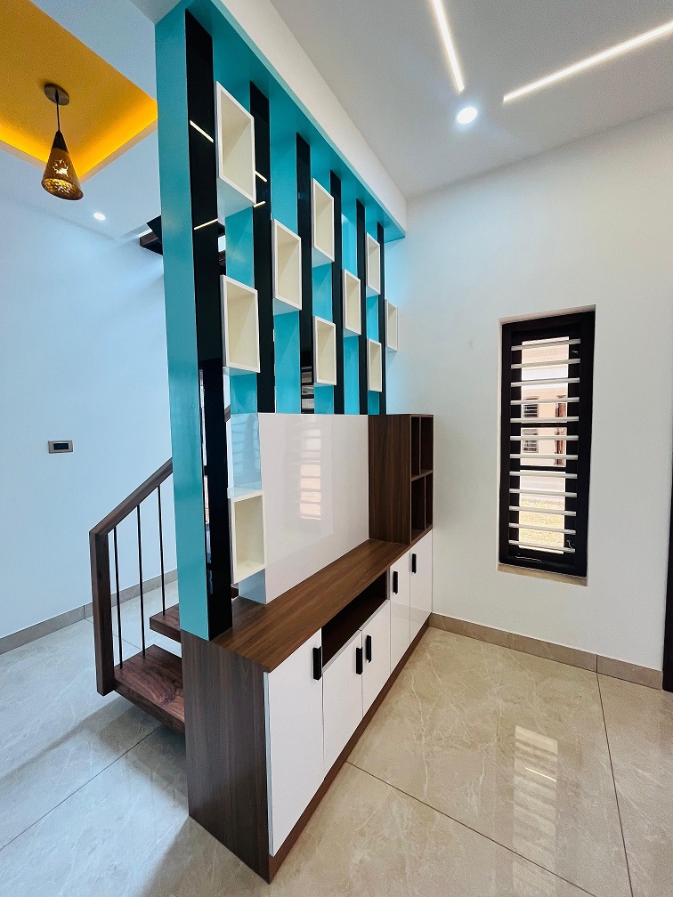 Ground floor- Sitout, living area, dining hall, two bedrooms with attached Washrooms, one common washroom, kitchen, work area with smokeless stove, exists. High quality Kitchen cabinets & wardrobes work completed with necessary light fitting arrangements.