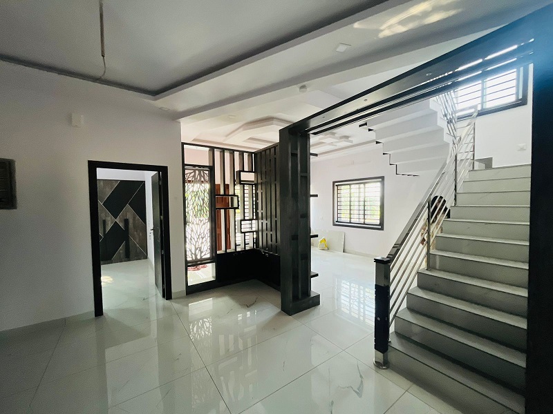 Ground floor- Sitout, living area, dining hall, two bedrooms with attached Washrooms, one common washroom, kitchen, work area exists. necessary light fitting arrangements.