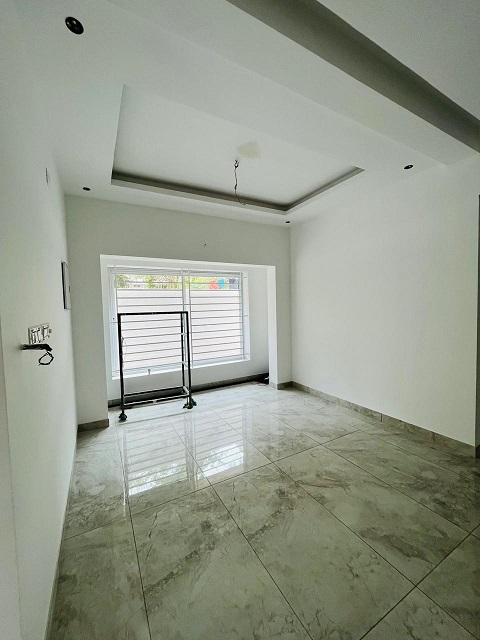 Ground floor- Sitout, living area, dining hall, two bedrooms with attached Washrooms, one common washroom, kitchen, work area exists. necessary light fitting arrangements.
