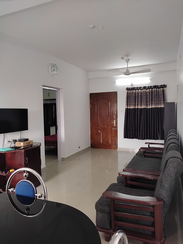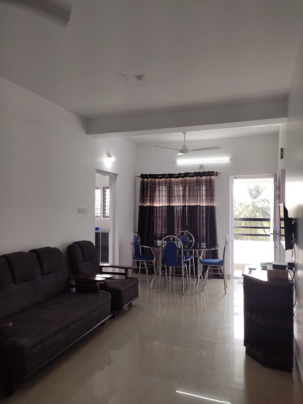 2 BHK (all attached) 957 SqFt Flat available Cheroor near Viyyur Thrissur . living cum dining, kitchen, work area. 1balconies exist in this apartment. Apartment is situated facing Corporation Tar road and close to Bus route. Car parking facility prevails