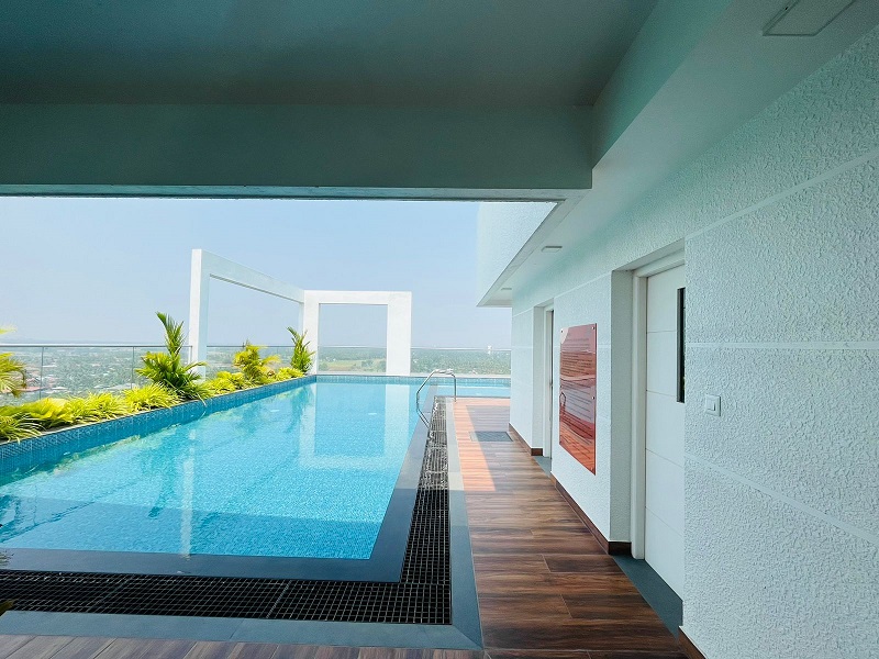 1265 SqFT 2 bedroom flat located near Patturaikkal, Thrissur. This gorgeous flat consists of living & dining spaces,2 bedrooms 2 washrooms, 1 balcony, kitchen, and a reserved basement car parking area.