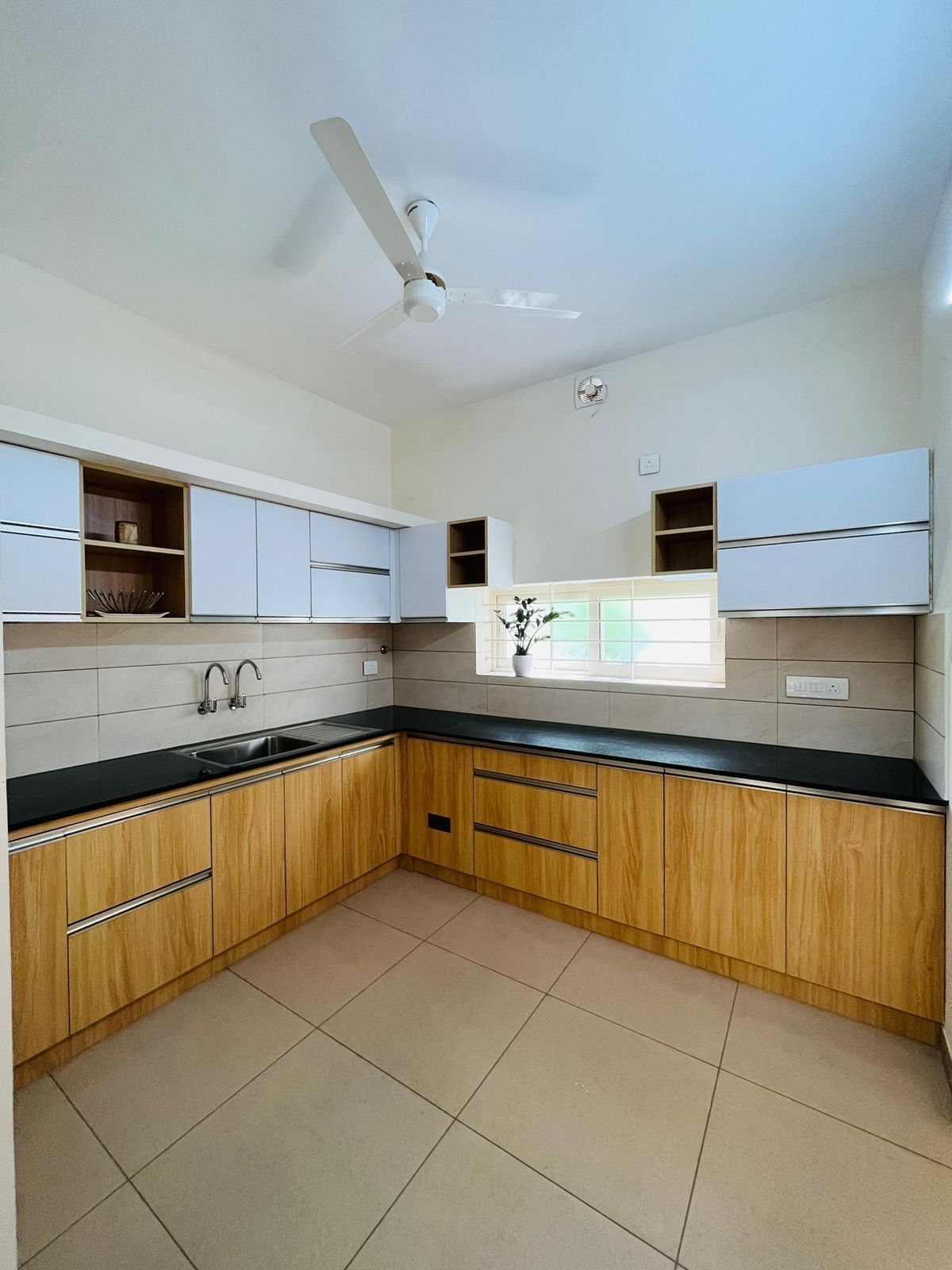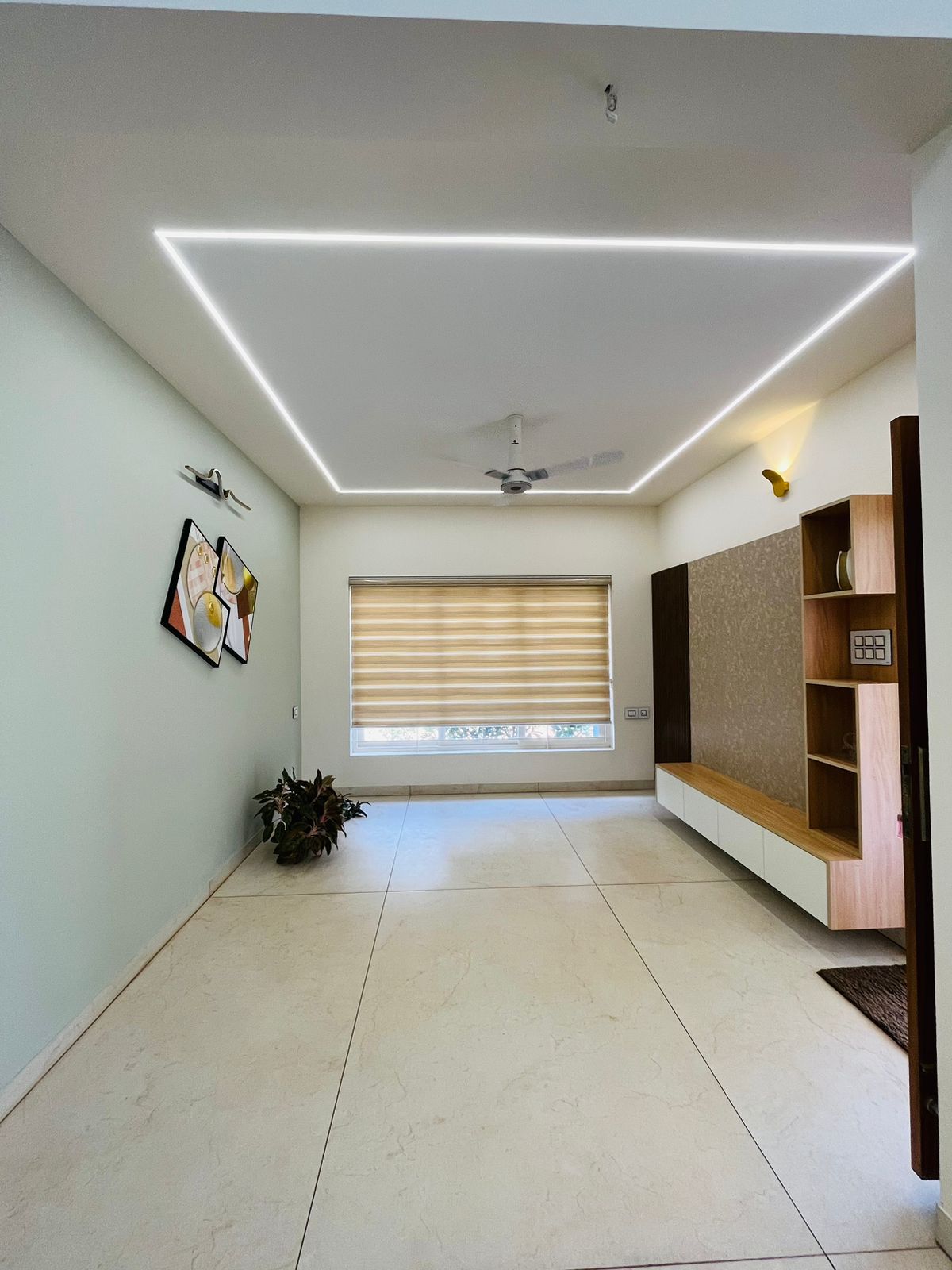 Ground floor- Sitout, living area, dining hall, two bedrooms with attached Washrooms, one common washroom, kitchen, work area exists. necessary light fitting arrangements.
